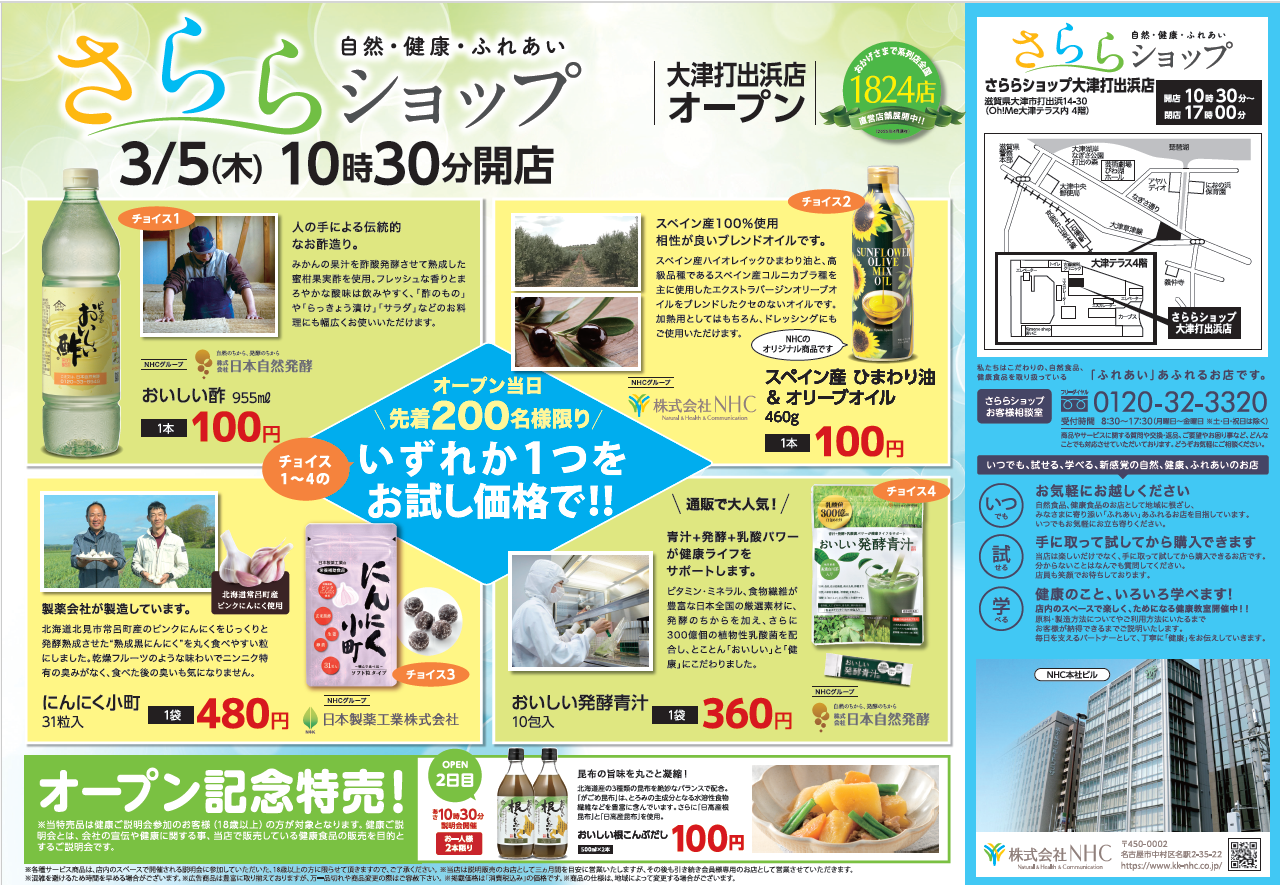 3月5日(木) 4F『自然・健康・ふれあい さららショップ』がオープン!